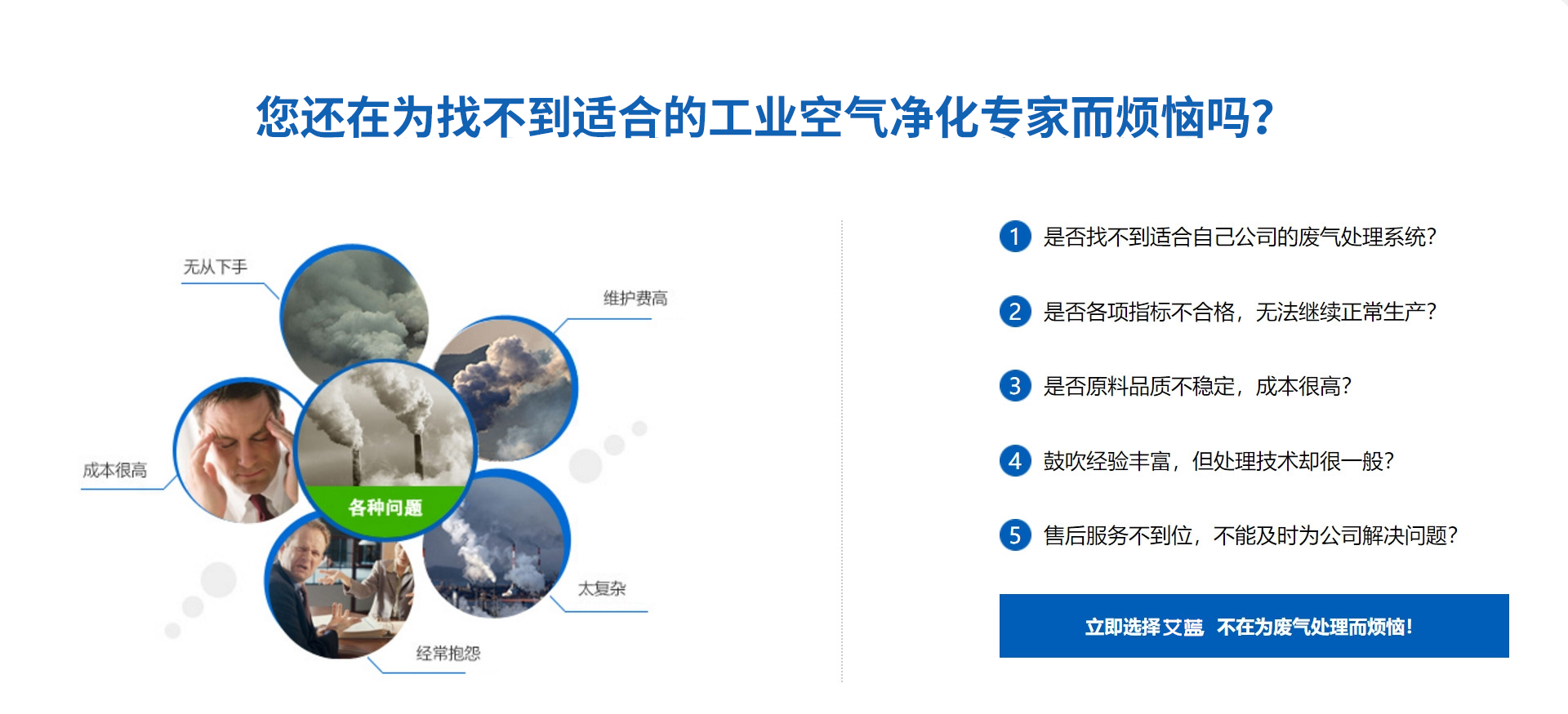 四川艾藍環(huán)保設備有限公司(簡稱艾藍環(huán)保)公司位于四川省眉山市丹棱縣機械產業(yè)園區(qū)工業(yè)大道,專業(yè)從事大氣粉塵廢氣、工業(yè)粉塵及廢氣(含各類廢氣、各種粉塵)治理工程,環(huán)保設備規(guī)劃、設計、制造、安裝、服務、銷售為一體的專業(yè)化綜合型廠家。我公司引進吸收歐美等******的環(huán)保技術,同時堅持"實事求是,精益求精,不斷創(chuàng)新"的原則,與公司擁有一批有豐富經驗的高素質的開發(fā)設計人員和營銷人員,從業(yè)務洽談到現場勘察、評估、規(guī)劃、設計、產品制造設備安裝,都建立了一套行之有效的管理制度。公司擁有機械設計、環(huán)境保護、暖通、化工、金屬腐蝕與防護、電氣、智能化設計、空氣動力學等各專業(yè)技術人員,產品結構及設計能力已達到國際******水平。